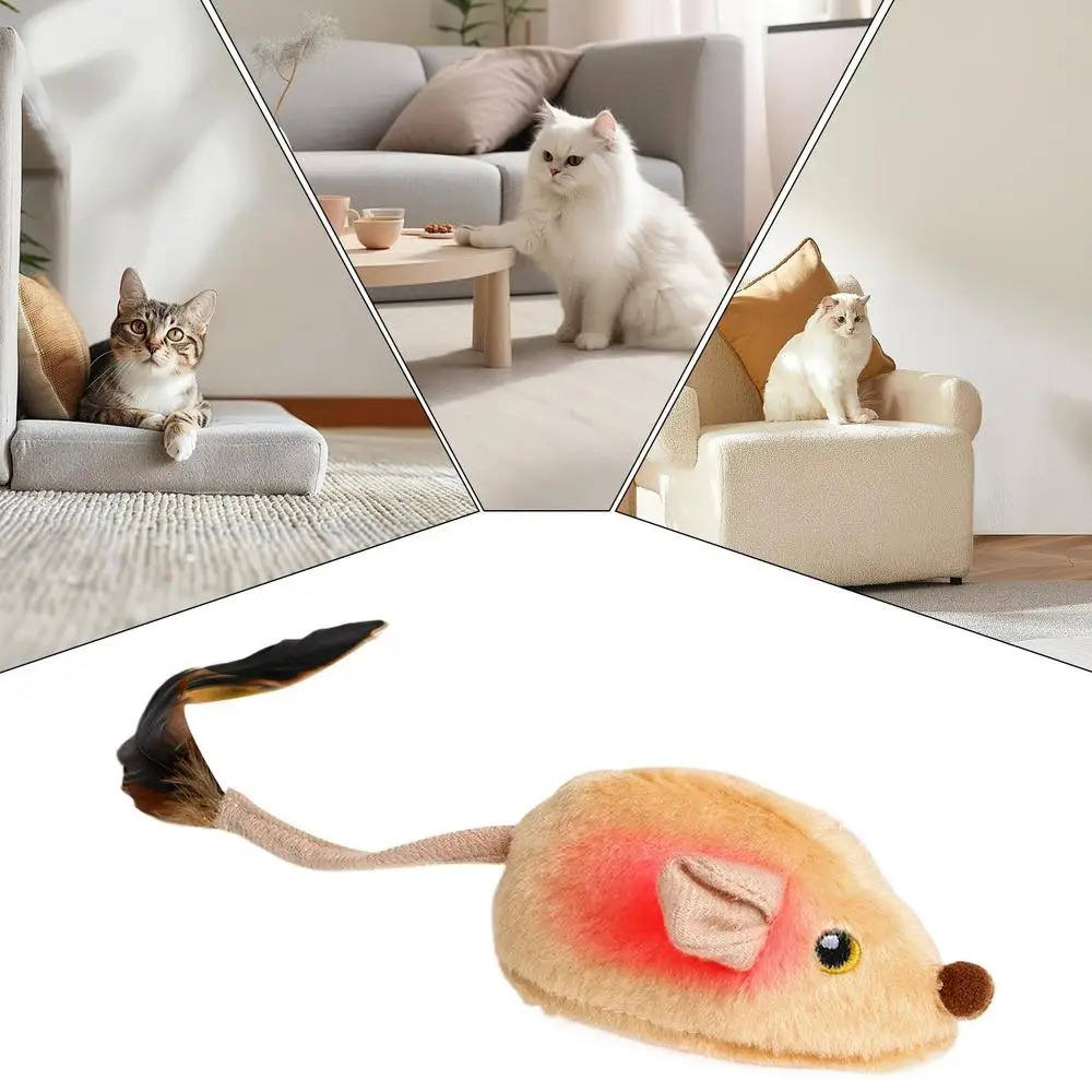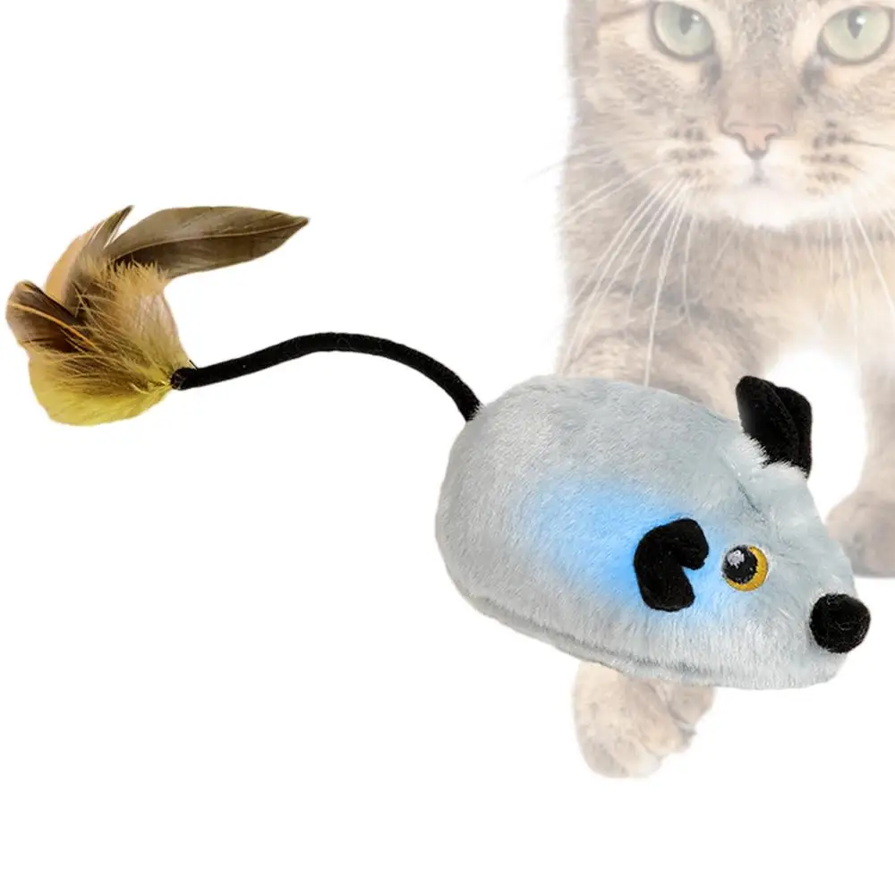 Bullet Points: 1.Keep Your Cat Entertained: Entertain your cat with this mice cat toy designed like a vivid animal; its bouncing tail and sound effects will keep your pet engaged for hours 2.Automatic Maneuvering: This Interactive Cat Toy Mice with a built-in sensor ensures it changes direction before obstacles, allowing seamless activity on flat exteriors 3.Rechargeable Fun: Never worry about dead batteries with the included USB charging cable. Your cat's touch will awaken this toy from power-saving mode, ensuring more fun 4.Sturdy ABS Material: This Interactive Cat Toy Mice seamlessly combines plush and ABS, allowing cats to play safely and prolonging the toy lifespan, for joyful entertainment with lasting enjoyment 5.Considerate Present: Dynamic movement patterns ensure play never gets boring, allowing your cat to enjoy everything he loves. A great present for your cats to have fun Improve your cat's playtime with our Mice Cat Toy! Equipped with a built-in sensor, it activates with your cat's touch, ensuring safe and interactive fun. Let your feline friend enjoy all their favorite activities in a secure way.